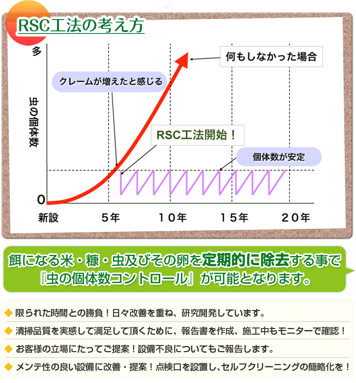 『全く薬剤を使わず害虫駆除する方法』『より短時間で日頃できない箇所までクリーニングする工法』として